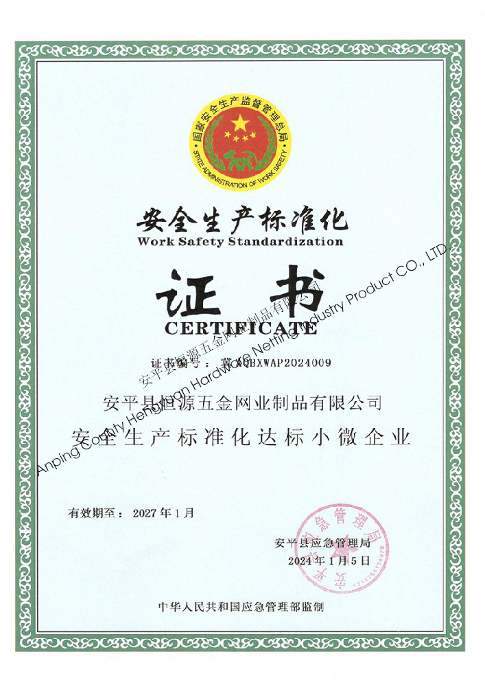 安平縣恒源五金網(wǎng)業(yè)制品有限公司,位于“絲網(wǎng)之鄉(xiāng)” 河北省安平縣,其前身為安平縣礦篩網(wǎng)廠,成立于2006年,注冊資金300萬元,是建廠時間較早、生產銷量較大的礦篩網(wǎng)骨干企業(yè)。