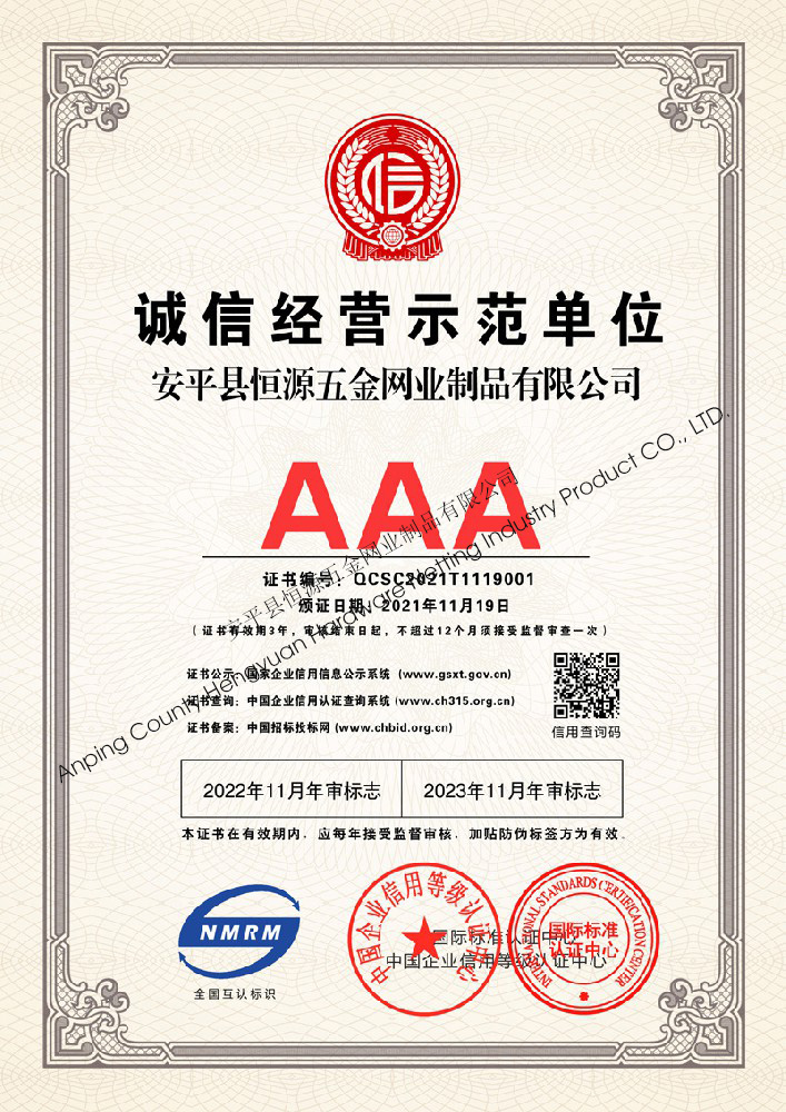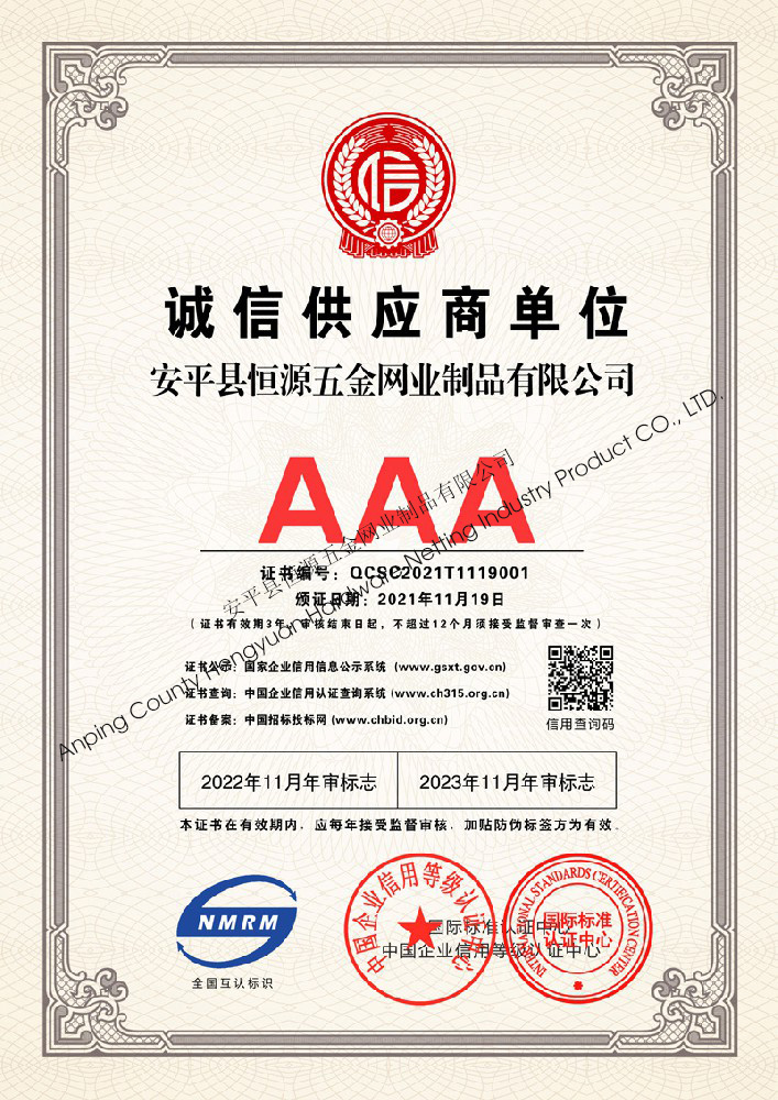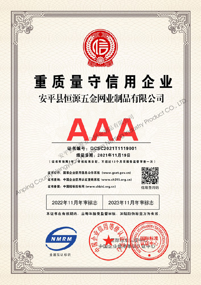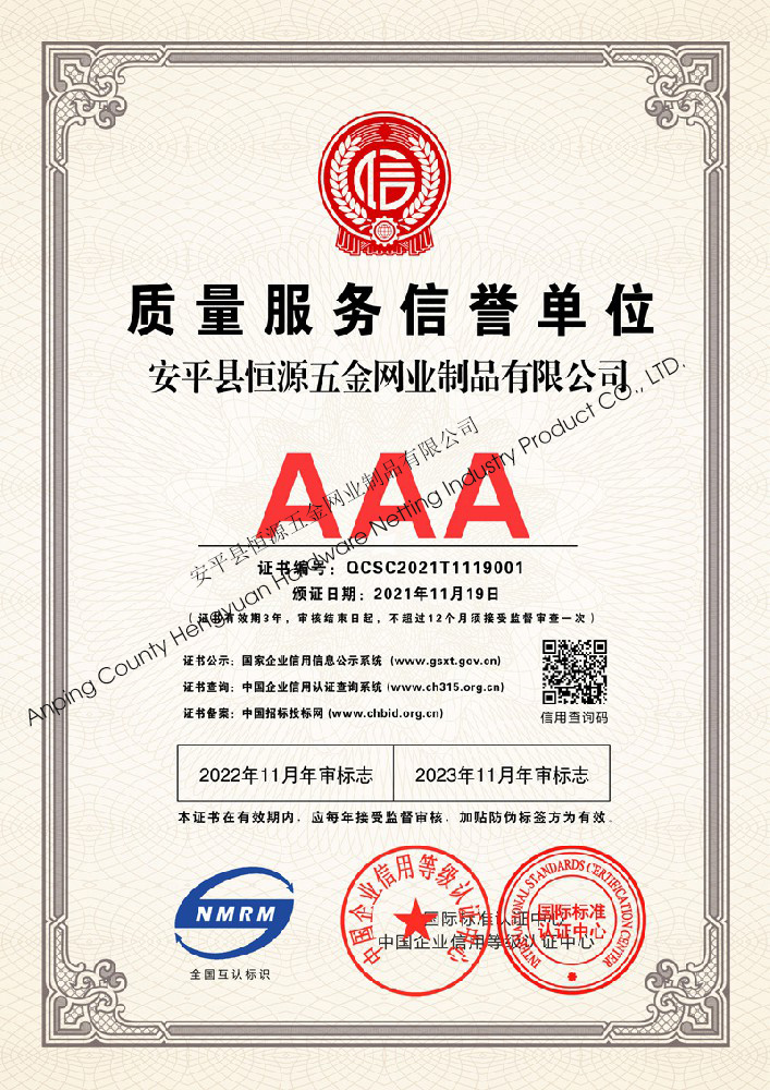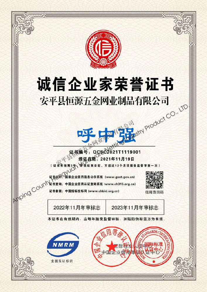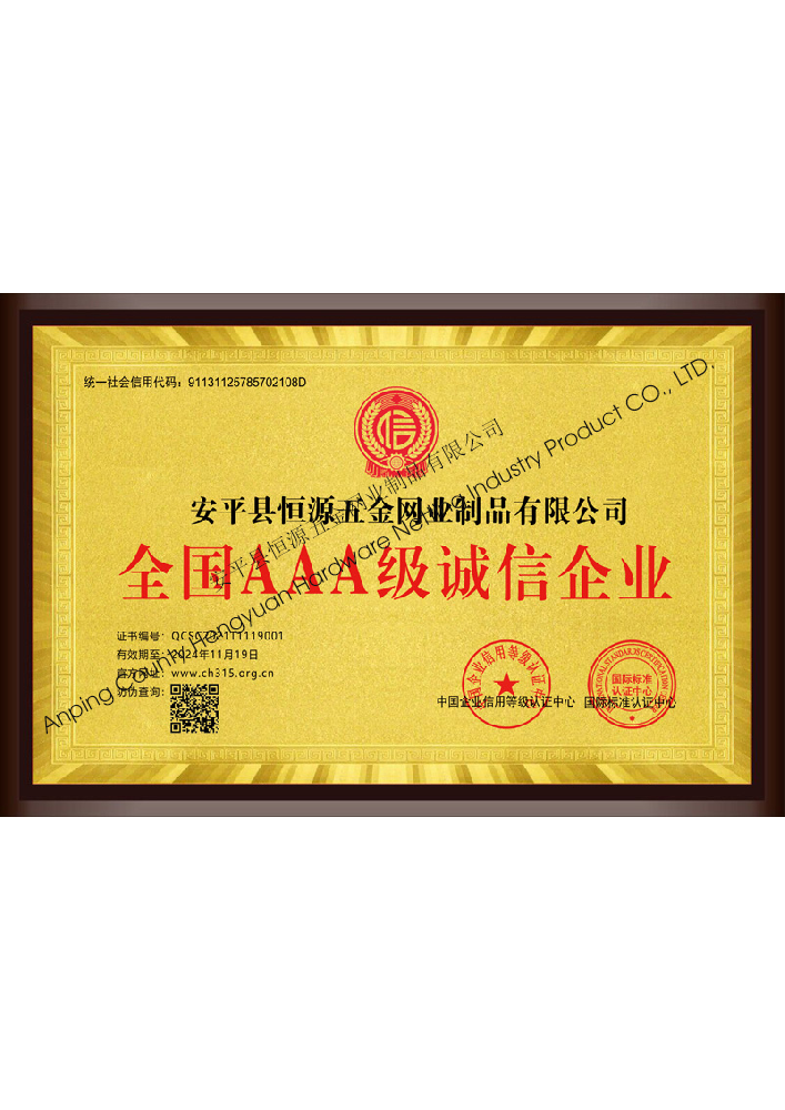 多年來,安平縣恒源五金網(wǎng)業(yè)制品有限公司堅持“科技興企、質量立業(yè)”的經營理念和“誠心為本、客戶至上”的合作宗旨,優(yōu)化生產工藝,打造優(yōu)質產品,提供完善的服務,受到國內外客戶的一致好評,產品行銷全國各地,并出口美國、德國、韓國、日本、臺灣等國家和地區(qū)。